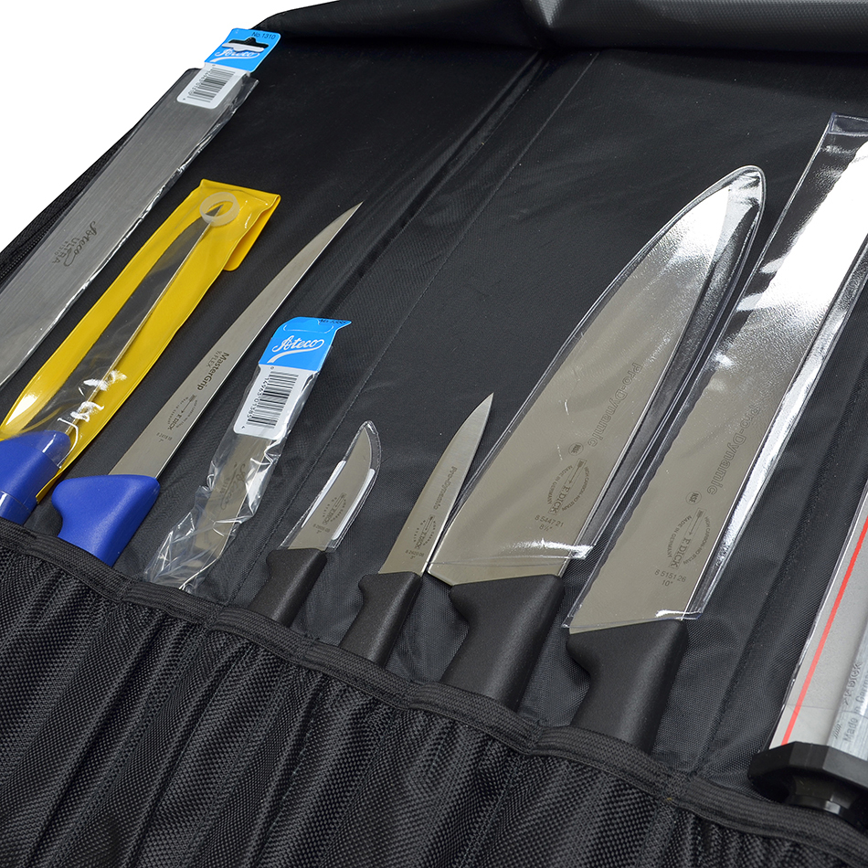 > Fully assembled Culinary kit. > Includes one roll bag + 35 essential culinary tools. > Quality roll bag with inner compartments & shoulder strap. > Includes top-quality knives from Friedr. Dick Germany.