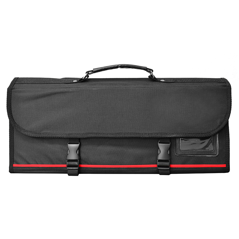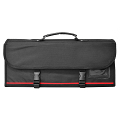 This roll bag features a 17-piece capacity with durable lining, multiple compartments, zipper pockets and are complete with a sturdy carrying handle and detachable shoulder strap.