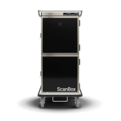 Banquet Line Combo CC06+HF06 is a light weight, yet heavy duty, cart for holding and transportation of hot and cold food with GN2/1 capacity. One cart but two separate compartments, one hot and one cold, that each hold 6 runners and a user friendly temperature controller with infinitely variable temperature setting. Fan heating system and compressor cooling system for fast and uniform temperatures up to +90°C and down to +3°C respectively. Total capacity of 12 GN2/1 or 24 GN1/1 containers given 65mm CC. Detachable U-shaped runners offer safe handling, easy cleaning and optimal temperature distribution. Other features are adjustable ventilation for optimal moisture control, ergonomic push/pull handles and easy-to-roll 160mm castors. A ScanBox is a Scandinavian designed product made for both back and front of house, especially with the Signature option with the possibility to customize the exterior design.