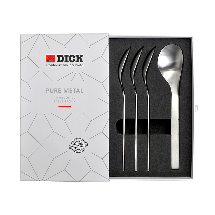 > 4 piece table spoon set. > F.DICK tried-and-tested steel quality. > Featuring a silky matt surface. > Ideal for soups, stews or even desserts. > Well balanced and comfortable in the hand.