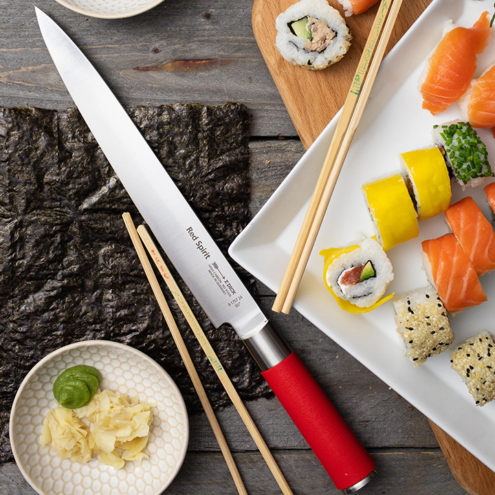 Let yourself be inspired by our passion for knives. The Red Spirit series combines Asian craftsmanship with the virtues of German quality workmanship. The clear but striking design will make your Red Spirit knives a real eye-catcher in your kitchen. We look at the world with open eyes and are always inspired by fresh impressions and insights to create new ideas.