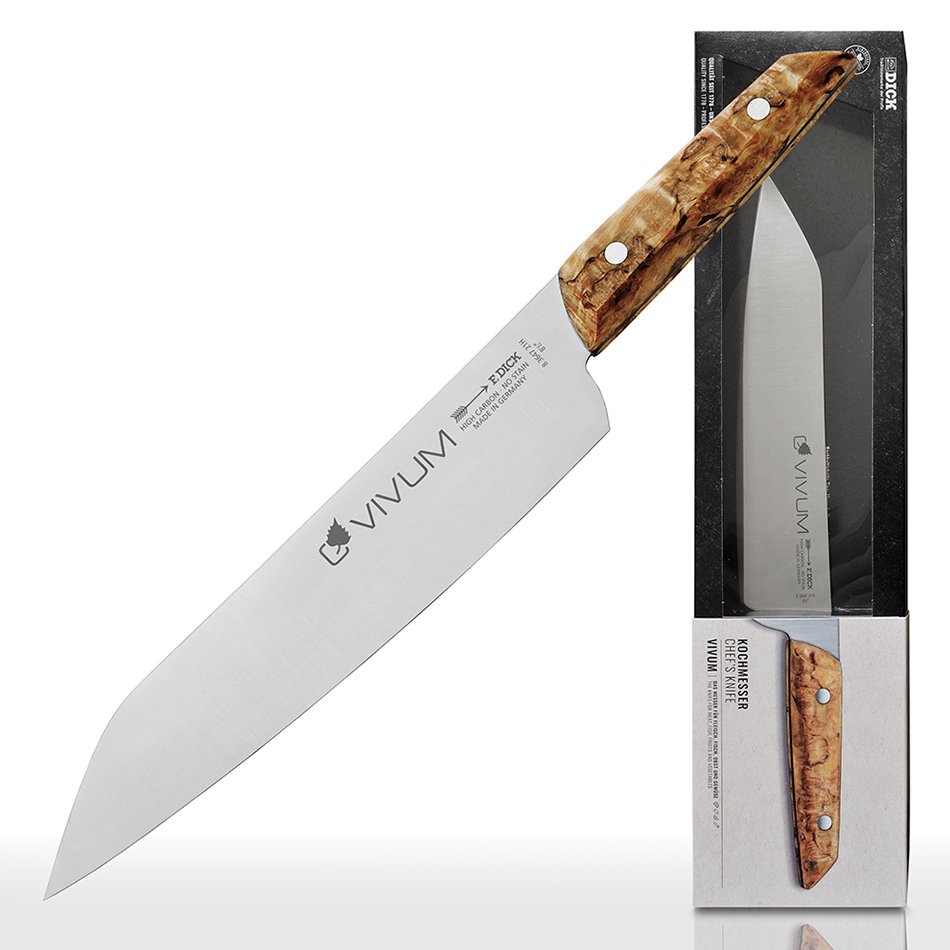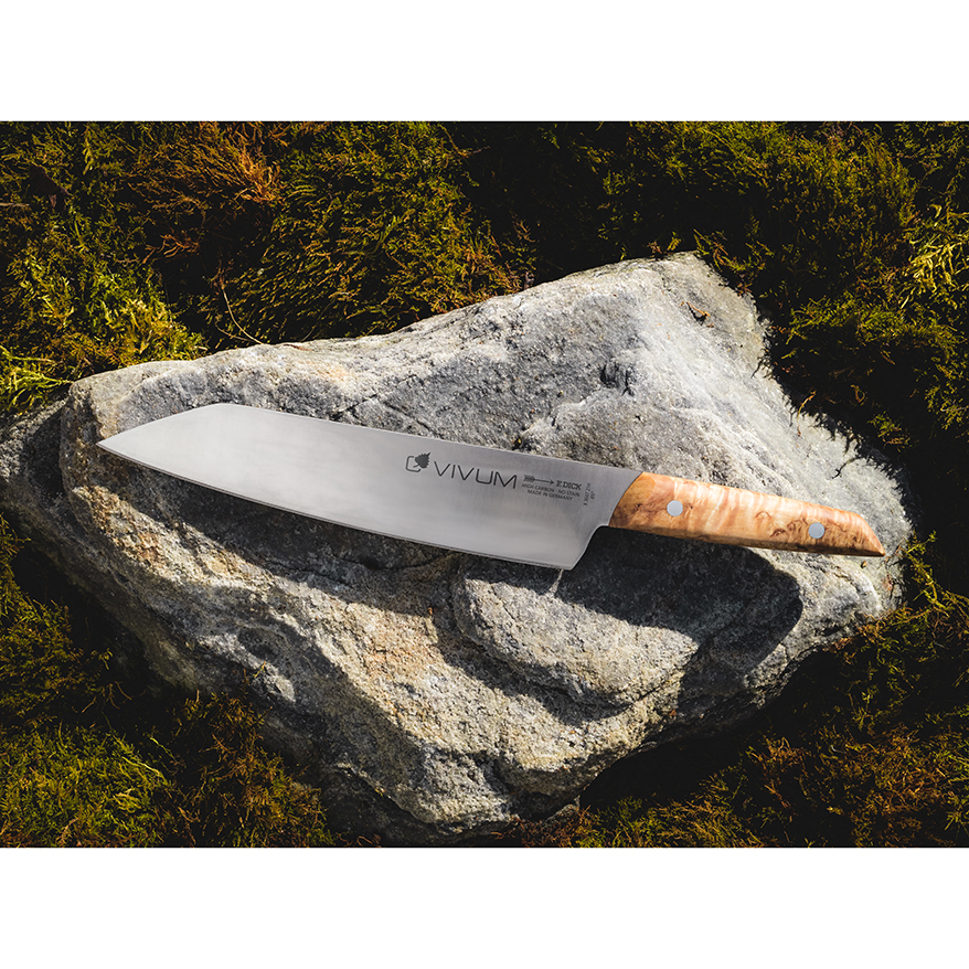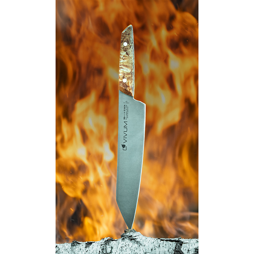 The unique power of nature combined in a new knife series – VIVUM. These unique Chef knives combine a natural appear-ance with extreme sharpness: an elegant and specially shaped birch wood handle comes together with the highest quality knife steel and a modern blade design. A design that has now been honoured at one of the world's most prestigious design competitions - the Red Dot Award 2024.