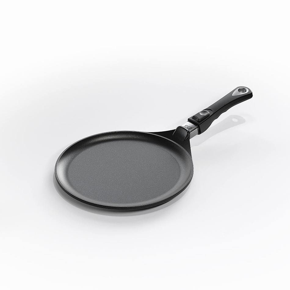 AMT also features an exclusive detachable handle option. This handle option features a quick-release button. Simply press and slide the button backwards to release the handle from the pan. This intelligent feature provides a child-proof cooking experience. The detachable handle is also convenient for both cleaning and space savings when storing your pan(s) in smaller kitchens or cupboards.
