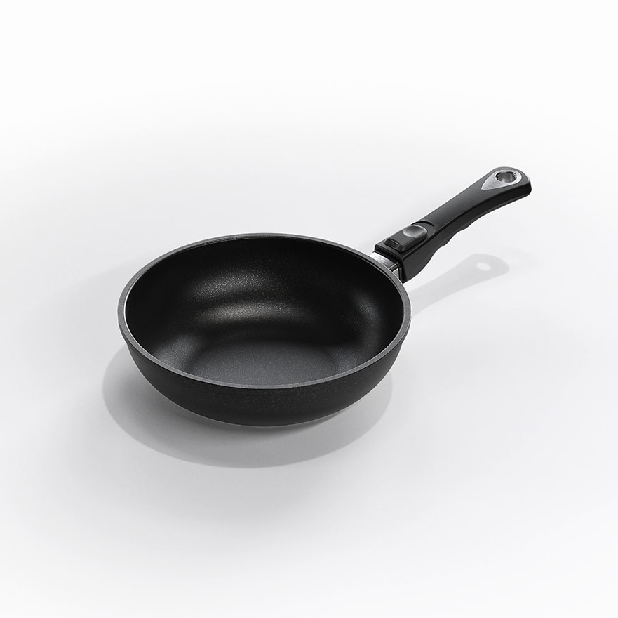 AMT also features an exclusive detachable handle option. This handle option features a quick-release button. Simply press and slide the button backwards to release the handle from the pan. This intelligent feature provides a child-proof cooking experience. The detachable handle is also convenient for both cleaning and space savings when storing your pan(s) in smaller kitchens or cupboards.