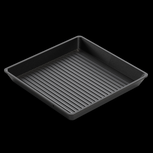 This non-stick and conveniently stackable tray from AMT allows you to cook any protein to absolute perfection and to achieve incredible grill marks. 26cm x 26cm x 3cm High 10.23” x 10.23” x 1.18” High
