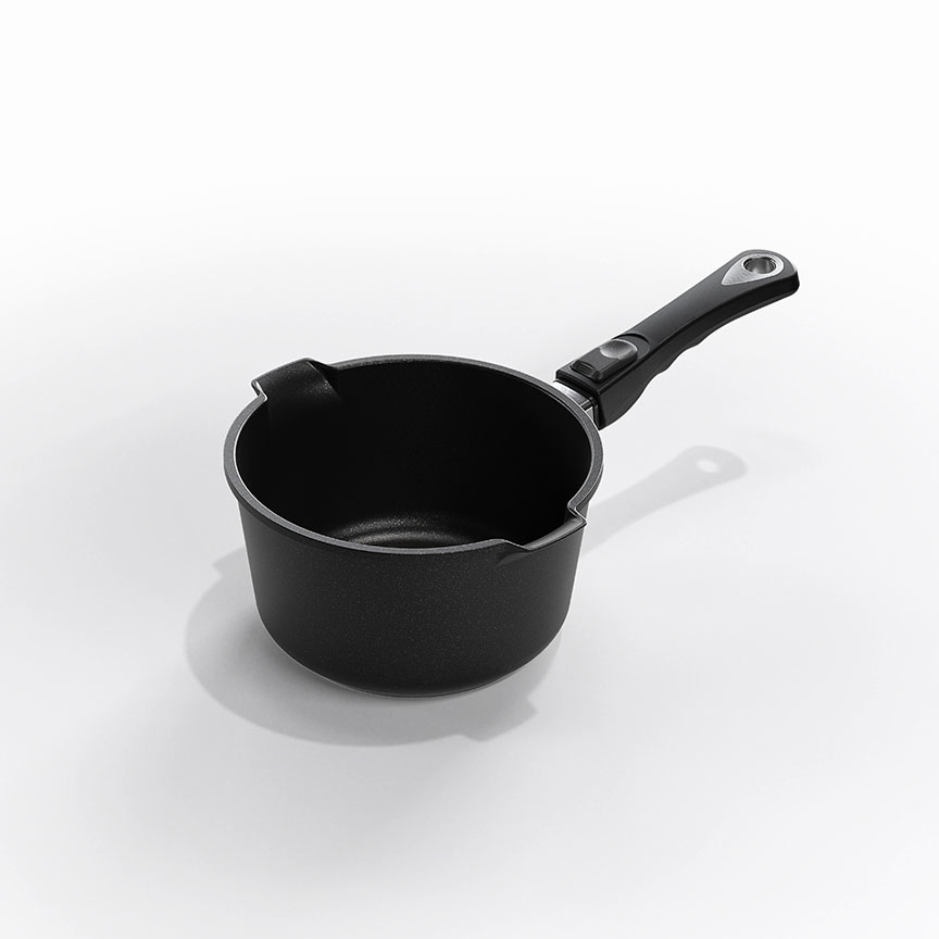 Milk and Sauce Pot with two spouts. 20cm diameter. Choose from induction or non-induction options.